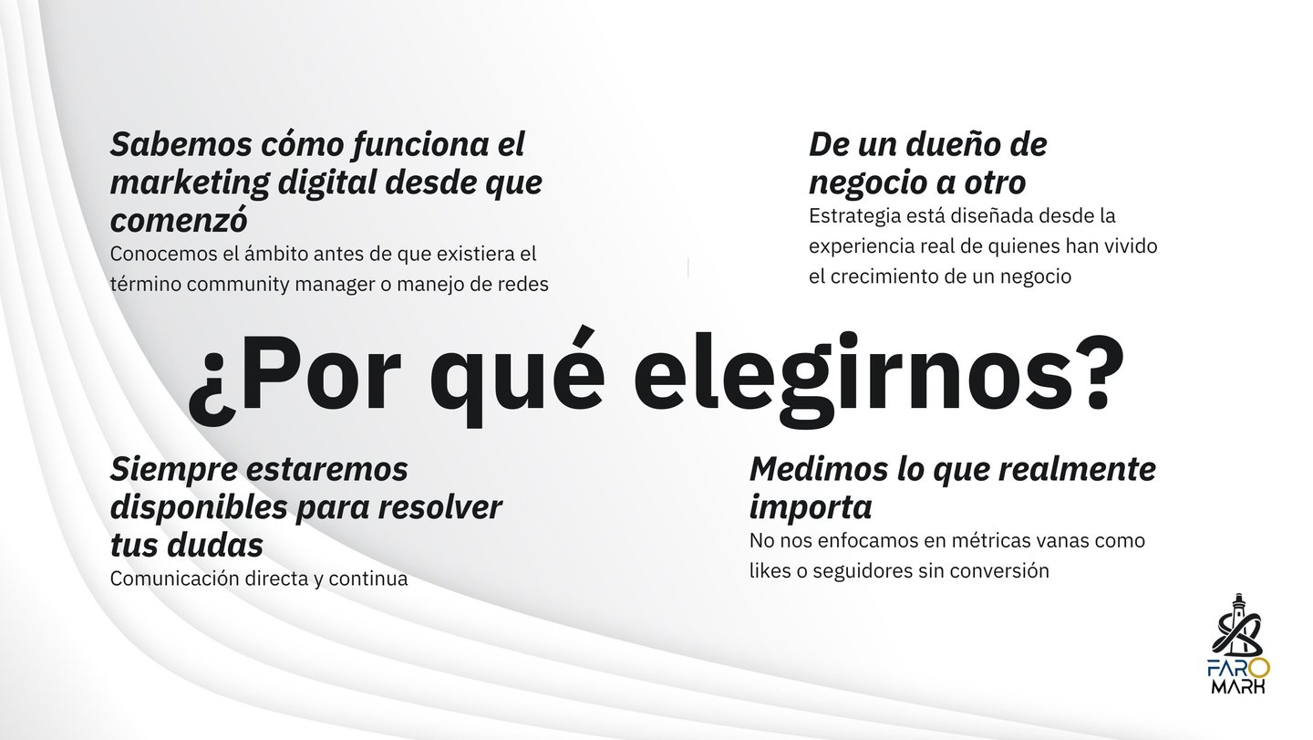 En Faro Market, combinamos estrategia y creatividad para construir marcas con alma y presencia digital sólida.